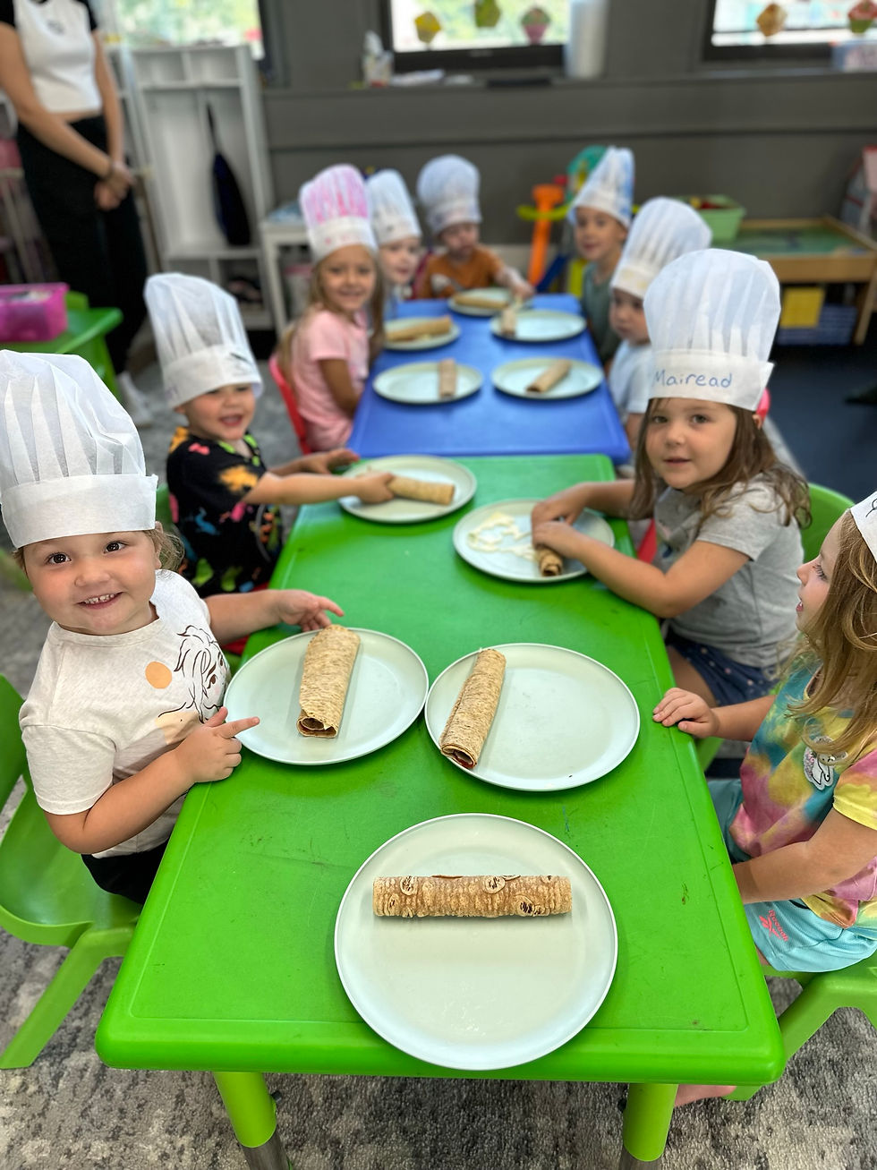 Here our children will hear a story and then we will prepare healthy snacks based on our story.